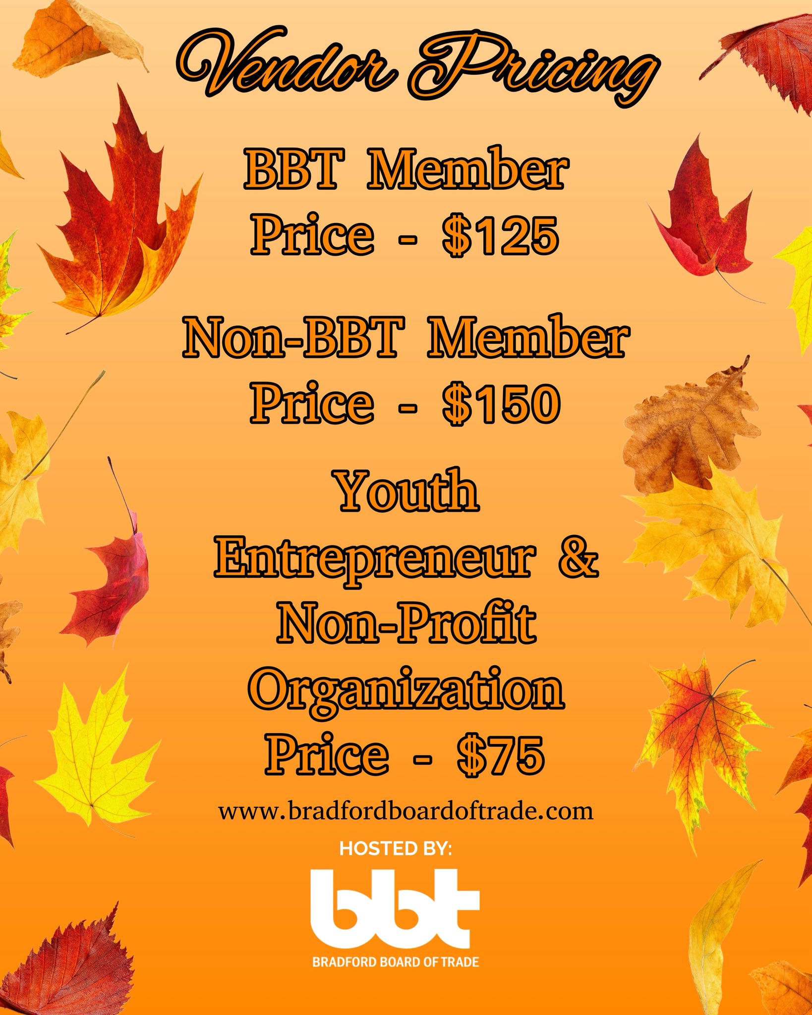 Don’t Miss Out! Showcase your business and be a vital part of this year’s show. Your presence will not only contribute to the success of the event but also position you for valuable connections and growth in our thriving community. Be a part of the excitement and make the most of the opportunities that the Fall in Love with Bradford Show has to offer!