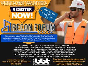 Tickets for the 2025 ReCon Forum are available for purchase by emailing admin@bradfordboardoftrade.com to register and payment is $30 for BBT members and $40 for non-member through e-transfer, making this an excellent opportunity for both members and non-members to attend. Whether you are a business owner, entrepreneur or community leader, this event offers valuable insights and networking possibilities to help you stay informed and connected in Bradford’s growing economy.